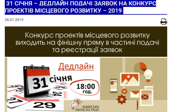 Конкурс проектів місцевого розвитку Львівської обласної ради виходить на фінішну пряму в частині подачі та реєстрації заявок.
