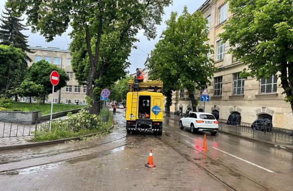 Але комунальні служби Галицького району оперативно ліквідували наслідки та відновили рух. Також триває відновлення трамвайної мережі - протягом 30 хв її також буде відновлено і трамваї продовжать рух".