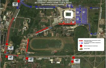 Виїзд зі стадіону після матчу відбуватиметься за маршрутами: «Арена Львів» – Броварського – Вернадського – Стрийська. Виїзд також здійснюватиметься на кільцеву дорогу».