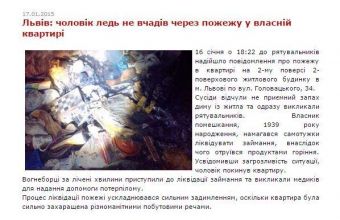 У прес-службі обласного управління Державної служби України з надзвичайних ситуацій інформують сьогодні, 17 січня, в повідомленні «Львів: чоловік ледь не вчадів через пожежу у власній квартирі»: