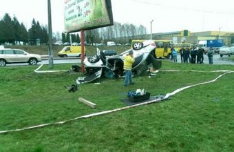 «15 квітня о 06:26 до рятувальників від чергового міліції надійшло повідомлення про те, що на вулиці Городоцькій, 355 у Львові, по водій автомобіля «Мерседес Е 320» зіткнувся з бордюром, в’їхав у металеву конструкцію соціальної реклами та перекинувся на ліву сторону. Внаслідок сильного удару водій авто загинув на місці події.