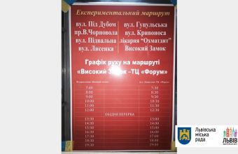 У прес-службі міськради повідомили в середу: «Почав працювати експериментальний маршрут з вулиці Під Дубом на Високий Замок із заїздом до лікарні «Охматдит».