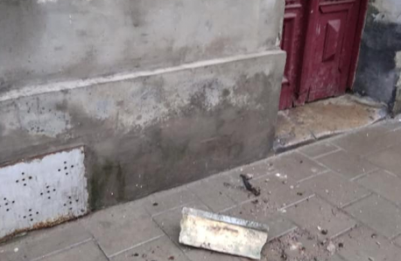 Про це повідомили в понеділок, 11 лютого, на сторінці громадської організації «Варта 1» в інтернет-мережі «Facebook», де також опублікували фото з місця події й розповіли: «Перехожа бабуся з переляку впала, але після допомоги встала й пішла до себе в під'їзд. Шмат балкона приблизно 50 сантиметрів завдовжки лежить. Під балконом ще багато таких набряклих шматків висять».