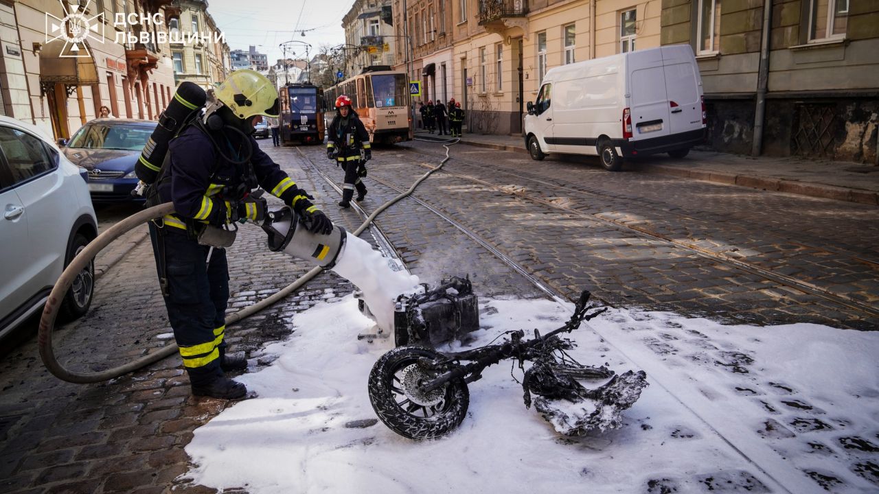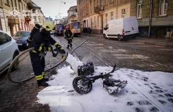 На момент прибуття надзвичайників до місця виклику горів електроскутер та був повністю охоплений вогнем.