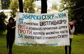 Нагадаємо, у Львові вже декілька місяців ведеться боротьба за збереження скверу, що знаходиться неподалік собору святого Юра. Причиною знищення скверу є те, що влада та керівництво УГКЦ збираються цього року встановити пам’ятник митрополиту Андрею Шептицькому і під шумок за проектом має відбутись перепланування всієї території навколо. Сквер, який був закладений у 1897 році відомим у Європі ландшафтним архітектором Арнольдом Рьорінгом, коли Шептицькому було 32 роки, повинен бути повністю знищений разом з деревами, з яких більшість є рідкісними видами.