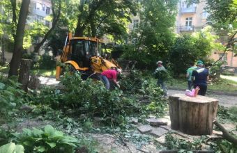 Сьогодні, завтра і після завтра будемо вивозити повалені дерева і гілки. Вони лежать на газонах і не заважають руху транспорту. Є багато дерев повалених на цвинтарях, тому там теж працюватимуть бригади.