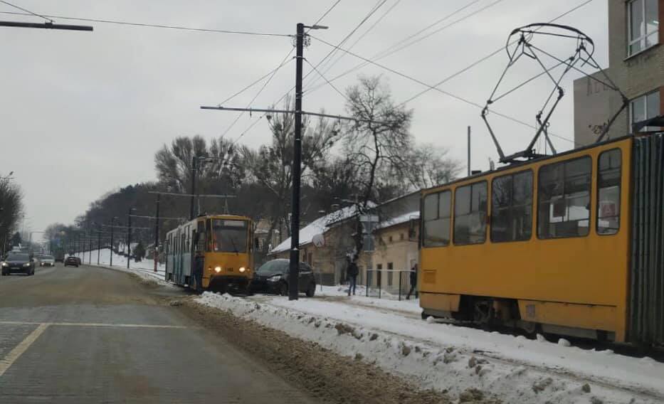 Автомобіль зачепив у середу, 9 січня, трамвай на перехресті вулиць Личаківської й Черемшини.