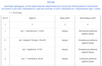 Про це повідомили Львівській міськраді, де також розповіли «Затверджено перелік житлових приміщень, на які першочергово виділятимуть кошти для облаштування елементів доступності для осіб з інвалідністю у кріслах колісних та осіб з інвалідністю з порушенням зору 1 групи».