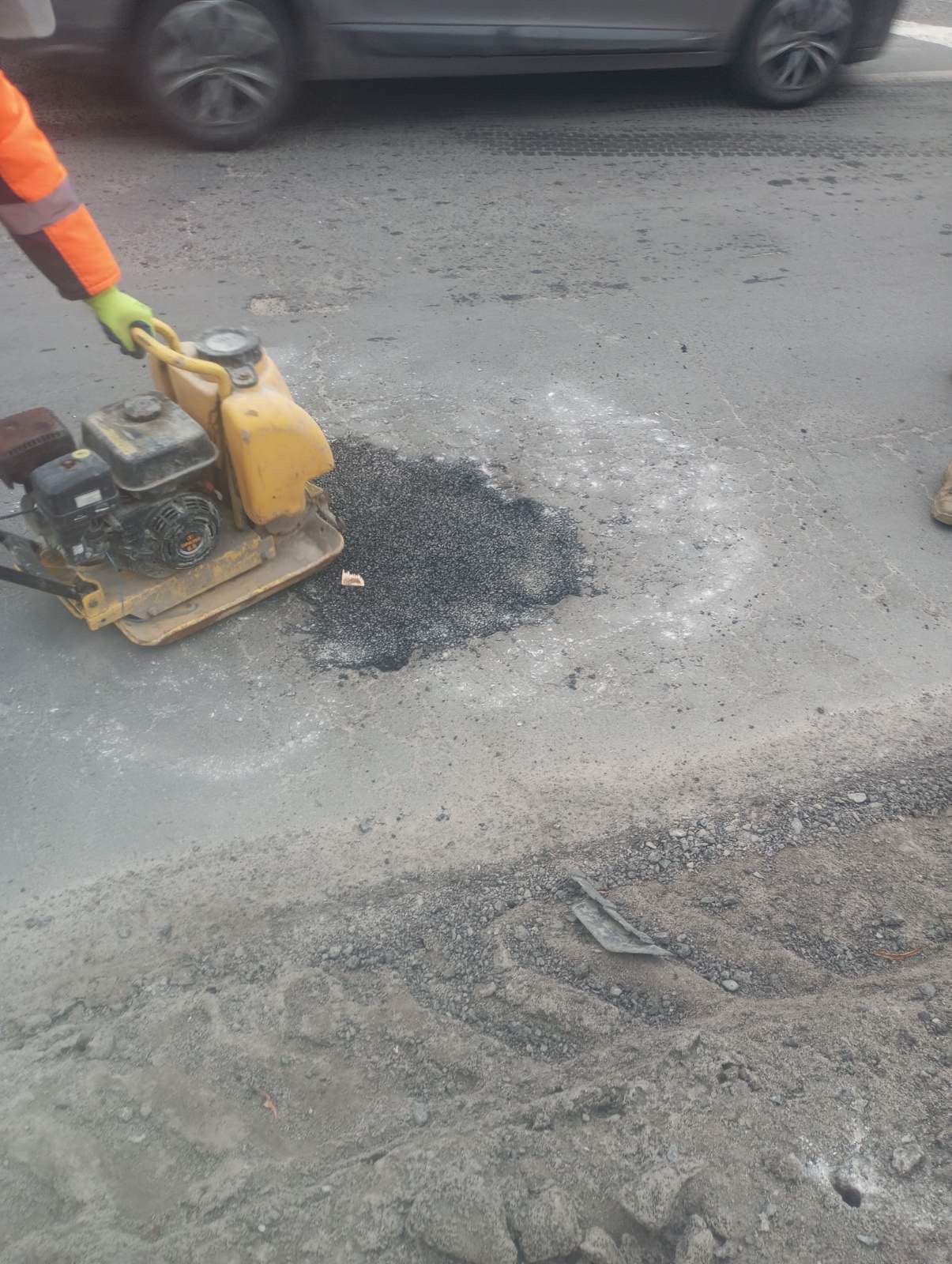 "Роботи виконуються холодним асфальтом, що дозволяє оперативно проводити ремонт за несприятливих погодних умов. У першу чергу ліквідовуються найбільш небезпечні пошкодження, що створюють ризики для водіїв та громадського транспорту.