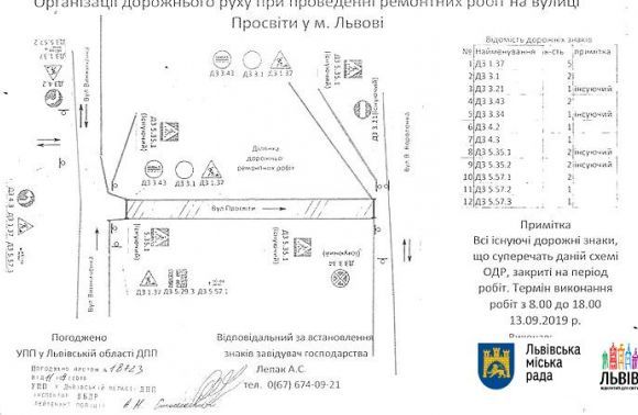 У зв’язку з демонтажом виступаючих частин фасаду ліцею «Просвіта» на вулиці Просвіти, вона буде перекрита в п’ятницю, 13 вересня, до 22.00 для руху транспорту.