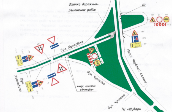 У зв’язку з проведенням ремонтних робіт, у суботу, 22 червня, з 8.00 до 20.00 перекриють для руху транспорту вулицю Хуторівка (під шляхопроводом на проспекті Червоної Калини).