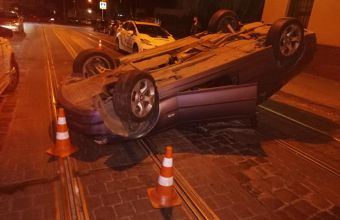 Уночі у вівторок, 17 вересня, перекинувся посеред дороги на початку вулиці Богдана Хмельницького у Львові автомобіль «BMW».