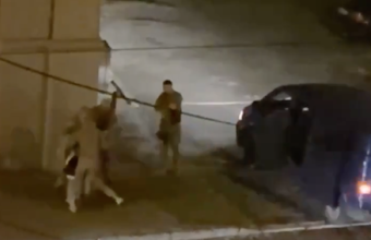 Кадр з 1,5 хвилинного відео, яке зафіксувало спробу затримання цивільного чоловіка людьми у військовій формі.