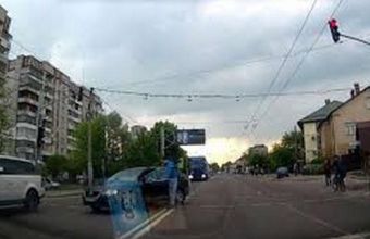 Днями на вулиці Городоцькій у Львові автомобіль ледь не збив пішохода, який переходив дорогу за сигналом світлофора на регульованому переході. Пішохід, проте, не розгубився та вирішив провчити порушника.