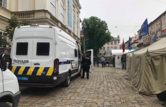 Працівники поліції здійснюють на площі Ринок поблизу Львівської міської ради посилені заходи безпеки з метою недопущення порушень правопорядку.