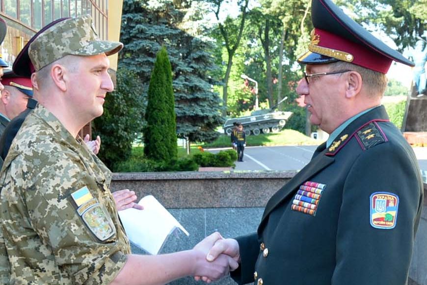 Під час шикування генерал-лейтенант Павло Ткачук також вручив бойові нагороди трьом військовослужбовцям Національної академії, які виявили мужність під час виконання бойових завдань у зоні АТО. Зокрема, підполковник Микола Туранський, який у серпні 2014 року захищав Україну біля Веселої Гори на Луганщині, отримав медаль «Захиснику Вітчизни»; а танкісти – молодший сержант Артур Оліференко та старший солдат Олександр Голіков, які у вересні 2014 року допомогли українським підрозділам вийти з оточення під Щастям, – ордени «За мужність» ІІІ ступеня».