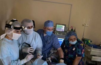 "Наші анестезіологи виконали дитині наркоз за особливою методикою, який дозволяє оперувати без застосування ендотрахеальної трубки. У такий спосіб діставати сторонній предмет з горла набагато легше. Працювали ендоскопом. При дуже ретельному огляді ми побачили у тканині кореня язикового мигдалика дротик. Видно, мама пробувала його дістати, але її зусилля дали зворотній ефект - дротик зайшов ще глибше у тканини. Нам вдалося забрати його щипцями, обійшлися без розтинів тканин. Довжина його - приблизно 2 сантиметри", - розповів Федір Юрочко.