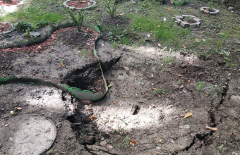 Земля біля колектора неподалік сьомого під'їзду будинку №34 на вулиці Науковій у Львові просідає знову.