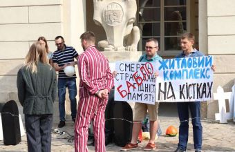 Активісти вимагали під Ратушею, щоб депутати не дозволили збудувати багатоповерхівку на території колишнього концентраційного табору для військовополонених.