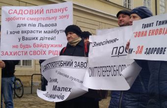 У четвер, 14 лютого, близько 10:00 біля будівлі міської ради розпочався протест львів’ян проти будівництва у місті сміттєпереробного заводу.