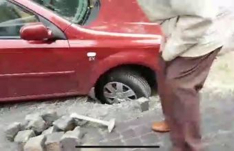 На вулиці Листопадового Чину у Львові провалився на дорозі автомобіль.