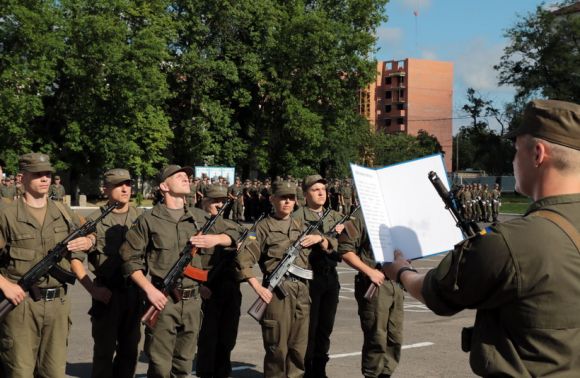 «Захід розпочався з виконання Державного Гімну України та вітального слова командира військової частини полковника Степана Логуша, який зазначив: «Професія воїна, захисника завжди була почесною на нашій землі. Ви обрали нелегкий шлях бути зразком громадянина України, який незважаючи на всі труднощі перш за все воліє захистити нашу неньку Україну від ворожих посягань в цей нелегкий час».