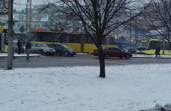 Трамвай №8 зіткнувся з автомобілем біля зупинки «Верхній Шувар».