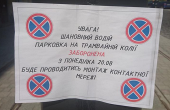 На ділянці вулиці Личаківської від вулиці Мечникова й вище розклеєні оголошення про заборону паркування на трамвайних коліях.