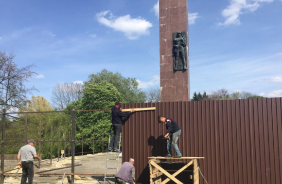 У міськраді пояснили: «Обгороджено найвищу стелу, яка на сьогодні становить найбільшу загрозу, та частину пам’ятника, яку було пошкоджено».
