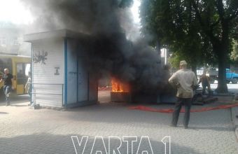 У громадському об’єднанні «Варта 1» повідомили у вівторок: «Горить зупинка біля пам'ятника Степану Бандері».