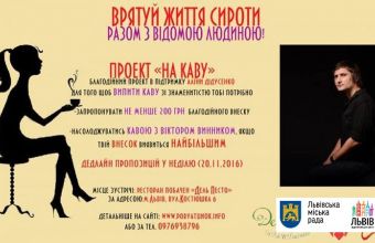 У прес-службі Львівської міськради повідомили сьогодні, 9 листопада, що ЛМБФ «Сестри Даліли» спільно із «PHURDA» розпочинають реалізовувати проект «На каву, або Врятуй життя сироти разом з відомою людиною». Пропонуючи благодійний внесок, людина отримує можливість зустрічі за кавою з відомою особистістю і допомагає врятувати життя дівчинці-сироті, яка потребує трансплантації органу легені-серце. Усіх небайдужих запрошують долучатись до проекту.