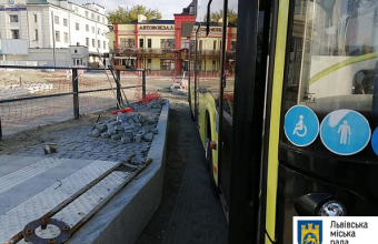 На площі Двірцевій у Львові облаштували чотириплатформи для висадки і посадки пасажирів трамваїв та дві платформи для пасажирів автобусів.