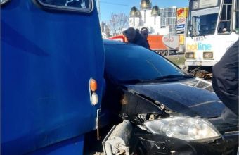 На проспекті Червоної Калини біля ТЦ «Вам» зіткнулися трамвай №8 та автомобіль Тойота.