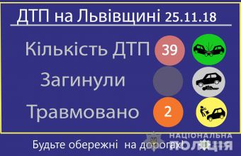 Про це повідомили у вівторок, 26 листопада, в Головному управлінні поліції у Львівській області, де також розповіли, що, зокрема, у Львові зареєстрували минулої доби 19 дорожньо-транспортних пригод.