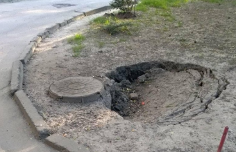 У неділю, 16 червня, біля люка неподалік п’ятого під’їзду будинку №5 на вулиці Володимира Великого розпочало утворюватися провалля.