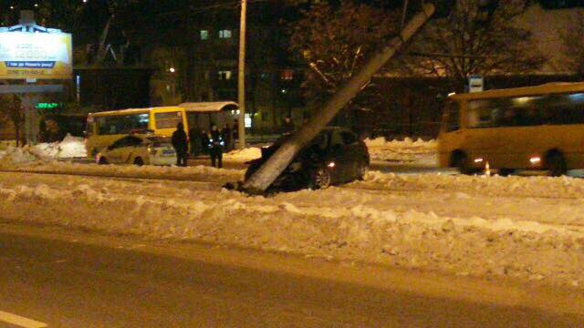 У середу, 7 грудня о 20:19 автомобіль «БМВ» в'їхав на вулиці Княгині Ольги в електричну опору, яка упала на нього й перекрила колію трамваїв №3 та №5.