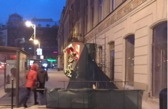 На проспекті Свободи у Львові через пориви вітру впало на перехожих з фасаду крамниці будівельне риштовання.