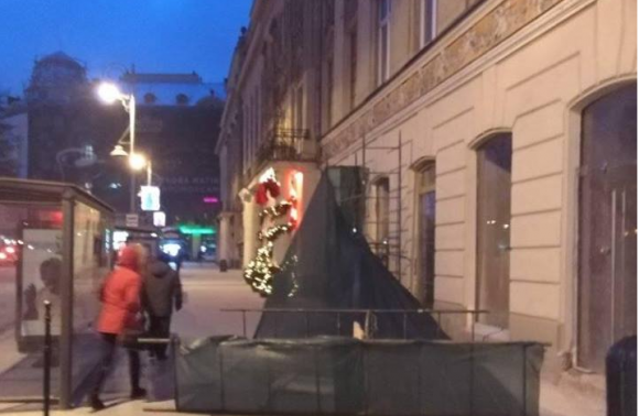 На проспекті Свободи у Львові через пориви вітру впало на перехожих з фасаду крамниці будівельне риштовання.