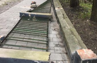 На вулицях Героїв Майдану й Коциловського обвалилася через сильні пориви вітру огорожа.