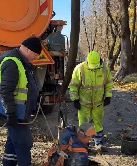 "Під час попередньої діагностики виявили значне відкладення піску та мулу. Є підозра, що пісок потрапляє у колектор через пошкоджену ділянку стінки або з дощоприймачів. Щоб з’ясувати причину, нині виконується гідродинамічна промивка та відеообстеження внутрішньої поверхні труби.