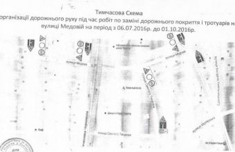 «Рух транспорту вулицею Медовою буде перекритий відсьогодні, 6 липня, з 9.00 до 21-ї години 1 жовтня у зв’язку з проведенням капітального ремонту. Тут замінюватимуть дорожнє покриття та тротуари. Об’їзд буде здійснюватися згідно з тимчасовою схемою організації дорожнього руху (у вкладеннях). На місці проведення дорожніх робіт встановлять відповідні знаки, інформаційні панно та щити загородження», – повідомили в прес-службі міськради.