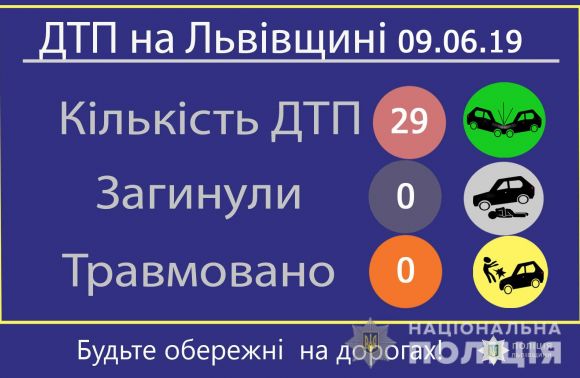 9 червня на автодорогах Львівської області сталися 29 дорожньо-транспортних пригод. Усі вони були без потерпілих.