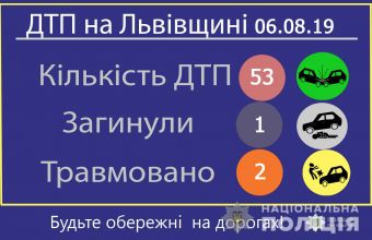 6 серпня на автодорогах Львівської області зареєстрували 53 дорожньо-транспортних пригоди, три з яких були з потерпілими – одна людина загинула, а двоє травмувалися.