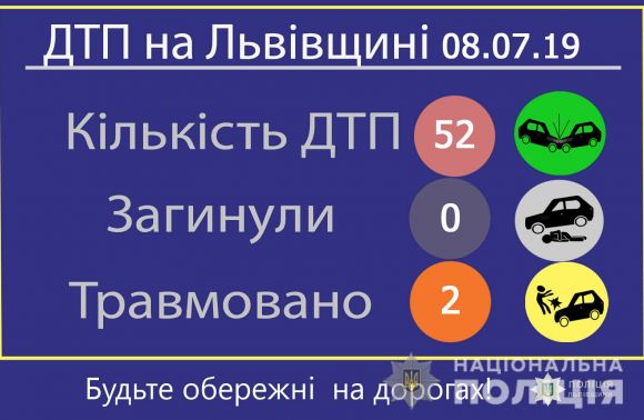 8 липня на автодорогах Львівської області зареєстрували 52 дорожньо-транспортних пригоди, дві з яких були з потерпілими – травмувалися двоє людей.