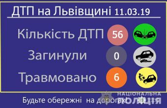 Про це повідомили у вівторок, 12 березня, в прес-службі Головного управління поліції у Львівській області, де також розповіли, що, зокрема, уЛьвові зареєстрували минулої доби 35 ДТП.