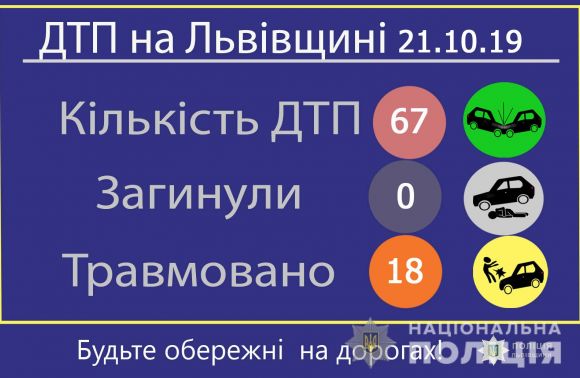 Про це повідомили у вівторок, 22 жовтня, в Головному управлінні поліції у Львівській області, де також розповіли, що, зокрема, у Львові зареєстрували минулої доби 39 ДТП.