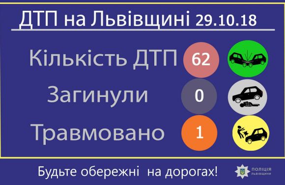 29 жовтня на автодорогах Львівщини зареєстрували 62 дорожньо-транспортні пригоди.