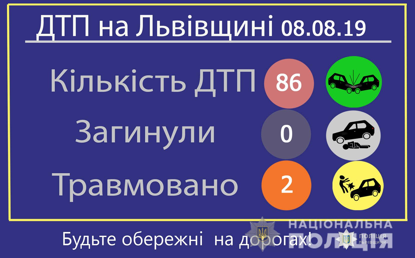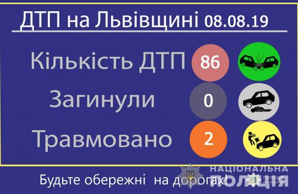 Про це повідомили в п’ятницю, 9 серпня, в Головному управлінні поліції у Львівській області, де також розповіли, що, зокрема, у Львові зареєстрували минулої доби 48 ДТП.