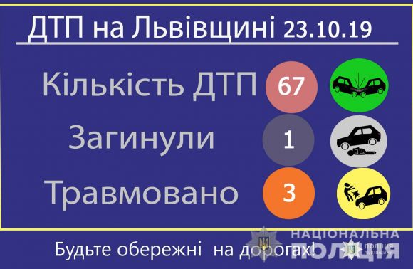 23 жовтня на автодорогах на території Львівської області зареєстрували 81 дорожньо-транспортну пригоду, три з яких були з потерпілими – одна людина загинула, а двоє –травмувалися.