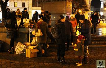 У Львові зібрали бійцям біля пам’ятника королю Данилу гору сухофруктів, горіхів і солодощів